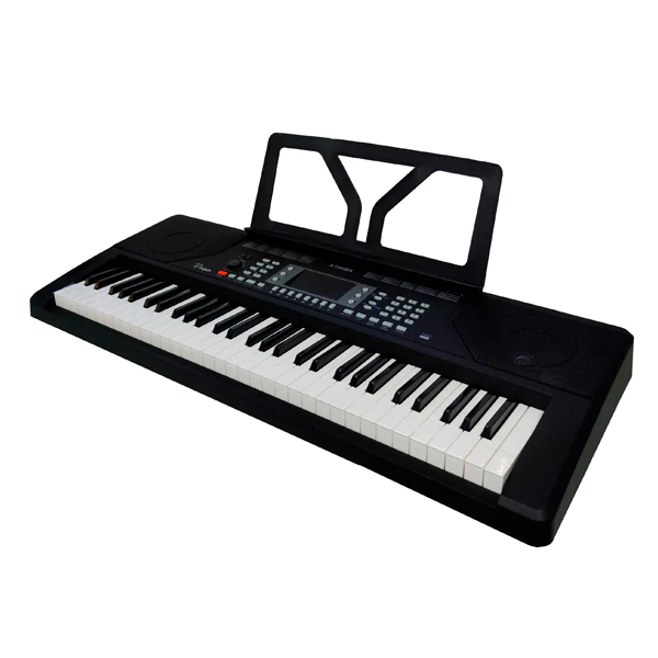 Teclado electrónico de 61 teclas tamaño completo, ideal para estudio o práctica en casa.